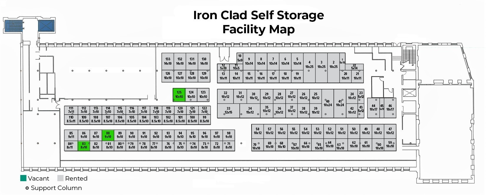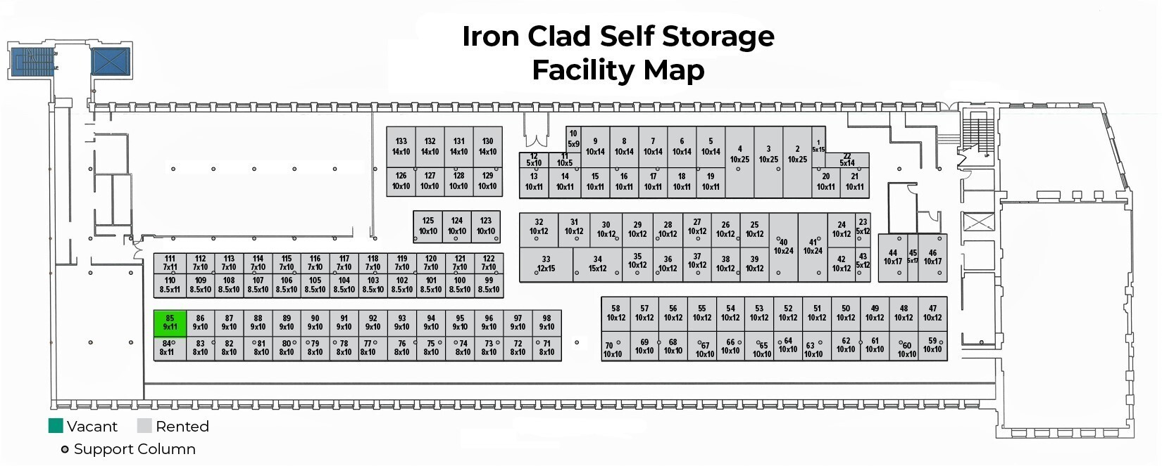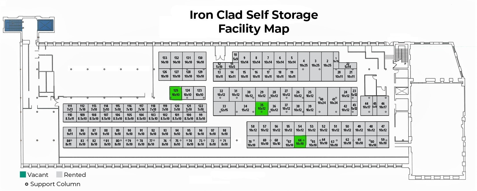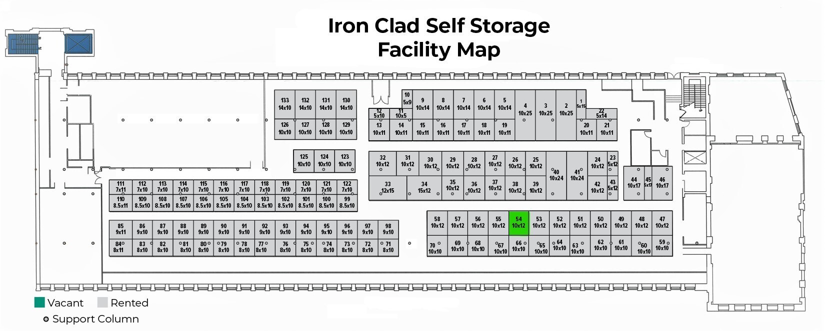 This size unit is an excellent upgrade from our 5×10 unit, as there are a few extra square feet in storage unit sizes, which make a huge difference when it comes to storing a more significant quantity of household items or personal belongings. It’s perfect for large cabinets, most furniture, all bedding sizes, and more. Great storage for smaller vehicles like motorcycles and landscaping tools will fit well, too.